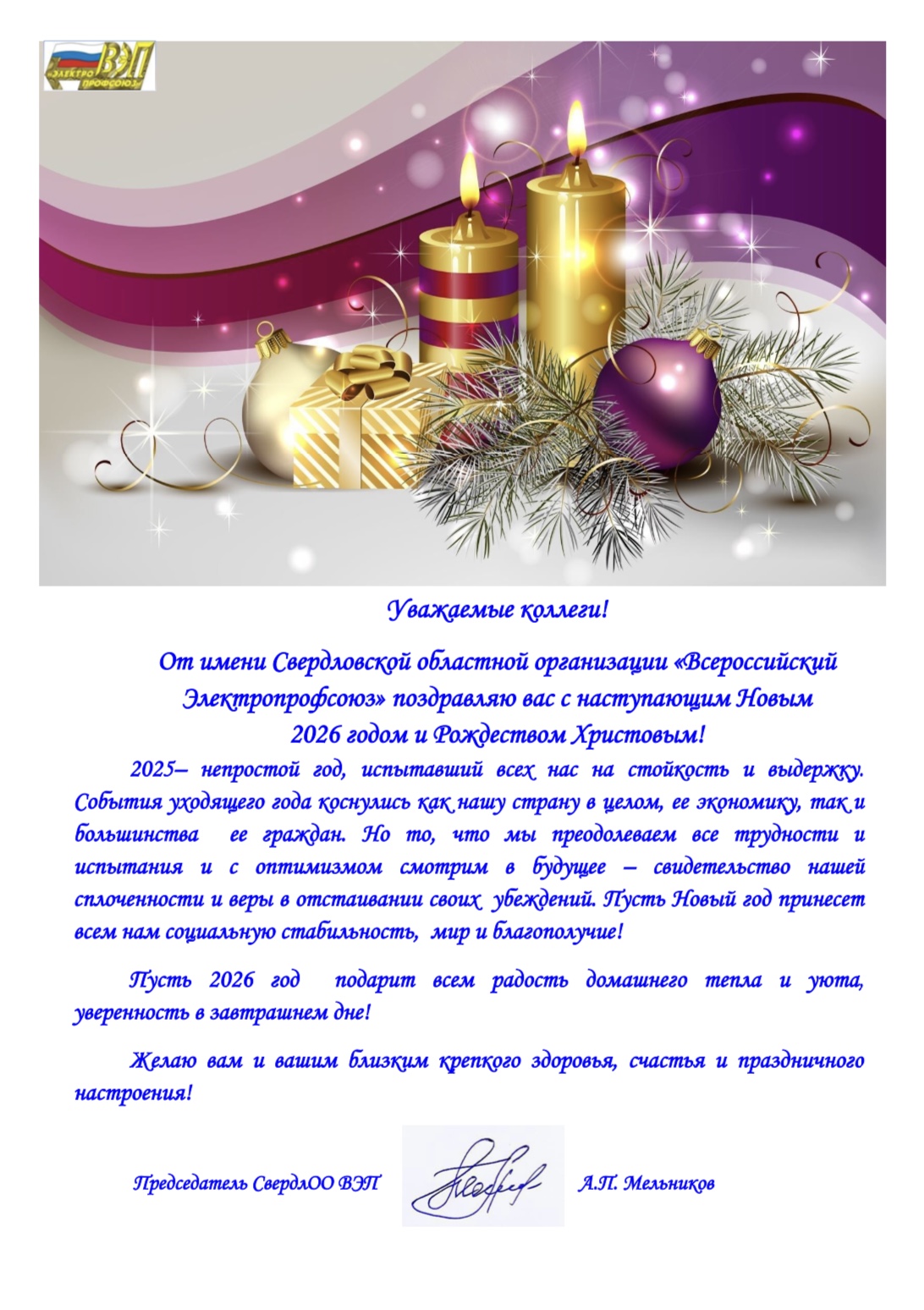 Электропрофсоюз» А.П.Мельников |