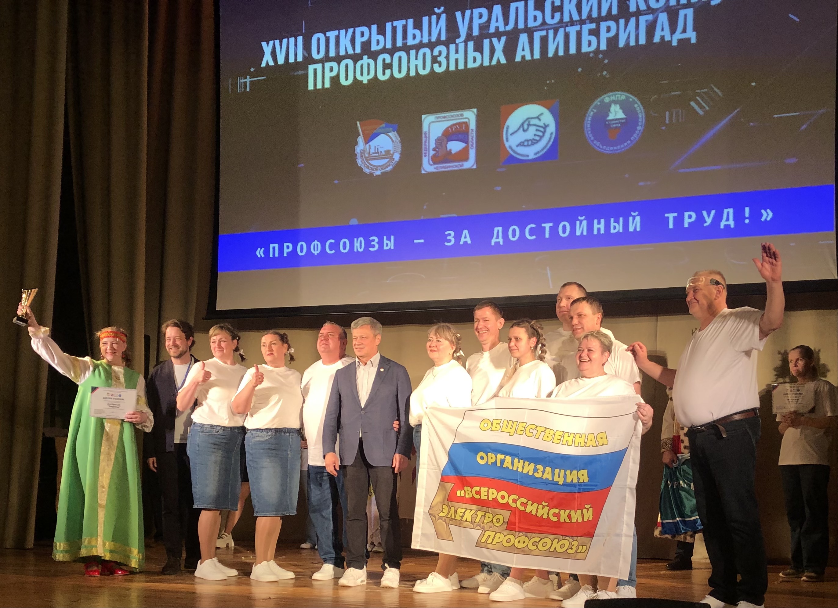 В этом году соревновалиськоманды Свердловской, Челябинской и Курганской областей. Выступлениеагитбригад стало праздником творчества и единства, где каждый коллектив продемонстрировал свою интерпретацию темы достойного труда.От Свердловской областной организации ВЭП в конкурсе участвовала агитбригада «Энергетик» (ППО Верхнетагильской ГРЭС СвердлОО ВЭП).